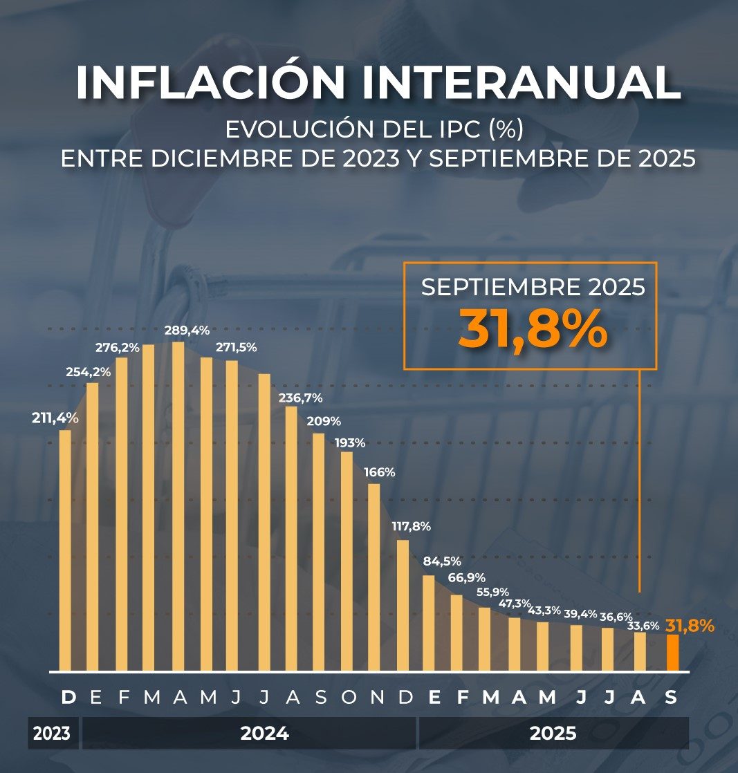 14/10/2025 21:53 — NacionalEl Instituto Nacional de Estadística y Censos (Indec) informó este martes que la inflación de septiembre fue de 2,1%, en línea con las proyecciones privadas. Con este dato, la variación acumulada en los últimos doce meses alcanzó el 31,8%, mientras que en lo que va de 2025 suma un 22%.