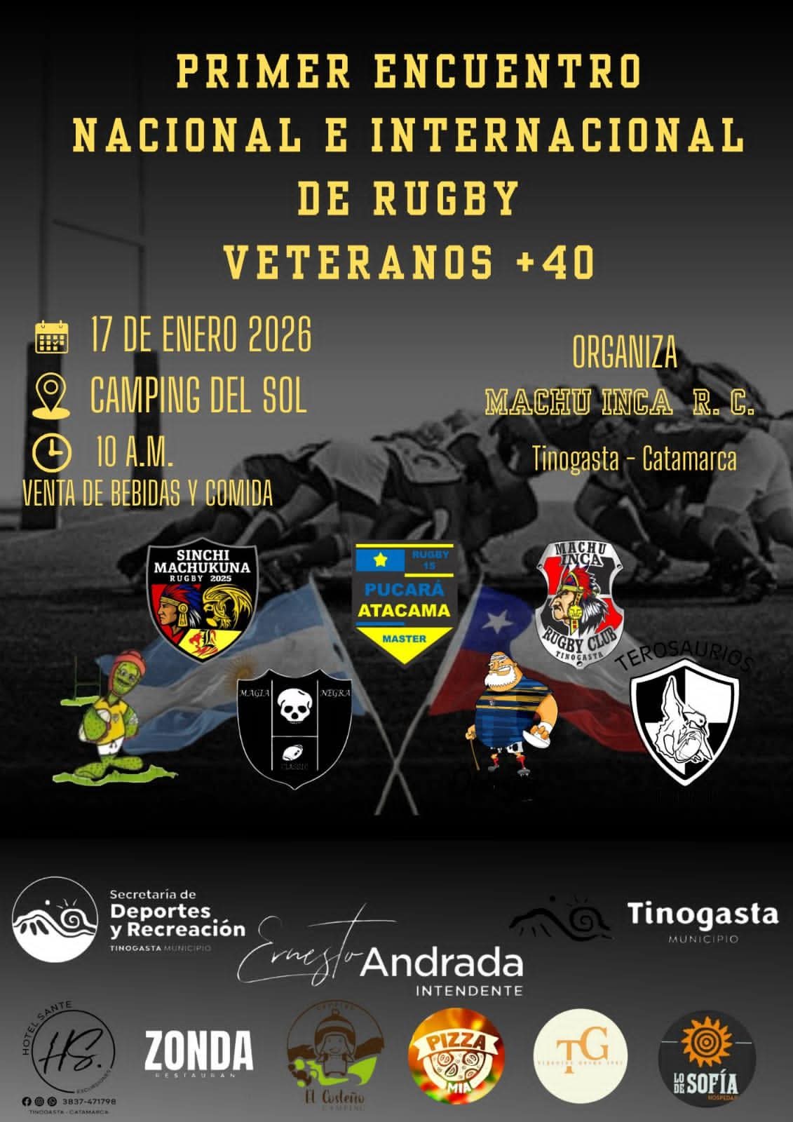Este sábado 17 de enero, Tinogasta será escenario del Primer Encuentro Internacional de Rugby Veteranos +40, una jornada deportiva inédita para la ciudad que reunirá a equipos locales, nacionales e internacionales en el Camping del Sol, ubicado sobre Ruta 3.